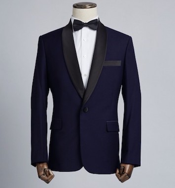 Le smoking à revers satiné fait son retour dans les mariages pour retrouver l’élégance des années 50. La mode est au bleu marine/nuit avec revers noir ou bleu en col châle ou à cran.